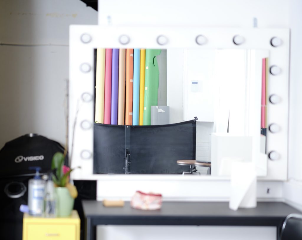 The Photographic Set is with corner cyclorama 4 meters high and 8 meters length with make up, hair corner and dressing room (The space is air-conditioned)